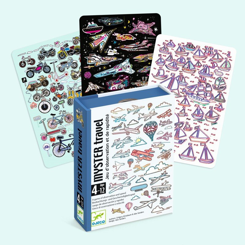 Kes leiab esimesena pildile peidetud eseme, mis sinna ei sobi? Ole kiireim ja leia peidetud ese (väike objekt või väike loom), mis peidab ennast erinevates stseenides. Näiteks: king dinosauruste vahel või jänes lillede seas. Reisiteemaline kaardimäng “Myster travel” arendab vaatlusoskust, kiirust, tähelepanu ja keskendumisvõimet. Lõbus nii lapsele kui täiskasvanule!