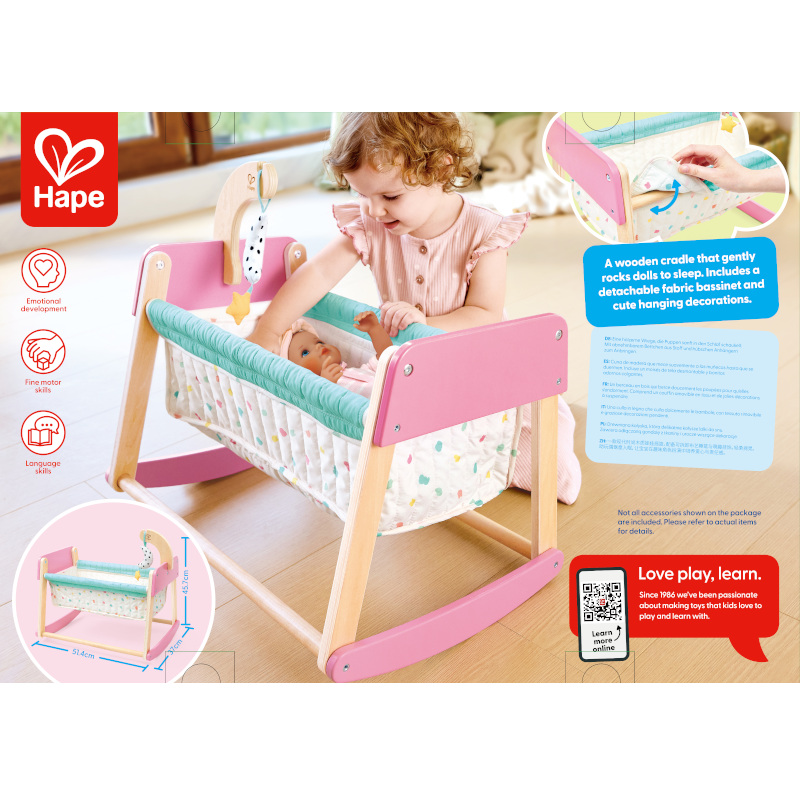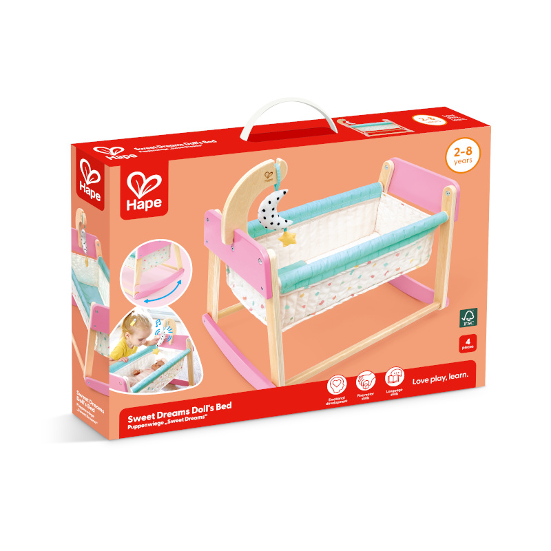 Muuda magamamineku aeg südamlikuks hoolitsemisrituaaliks HAPE kaunilt disainitud nukuvoodiga. Kiikuv nukuvoodi “Sweet Dreams” on loodud arendama lapse empaatiavõimet ja loovust läbi imiteeriva rollimängu. Voodi kumer puidust alus võimaldab rahustavat ja suvujat kiigutamist, matkides päris hälli liikumist ning pakkudes väikelastele autentset mängukogemust oma lemmiknukkude uinutamisel.