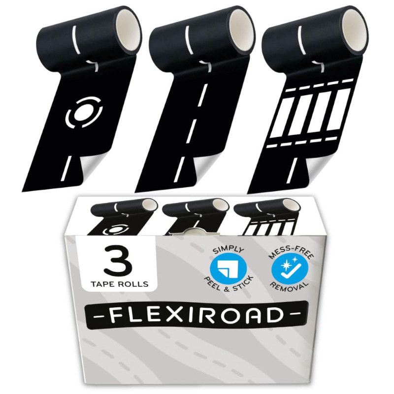 Flexiroad kleebitav autorada (3 x 10m) on loodud selleks, et pakkuda lastele lõputuid võimalusi oma mängumaailma laiendamiseks. See on suurepärane ja lihtne viis luua dünaamilisi teedevõrke mis tahes siledal sisepinnal. Teip on disainitud kopeerima silikoonist teeosade välimust, pakkudes autentset mängukogemust. Kasuta seda koos autogaraažiga, ehita teedevõrgustik nukumajade vahela või kombineeri teipi teiste autoradadega!