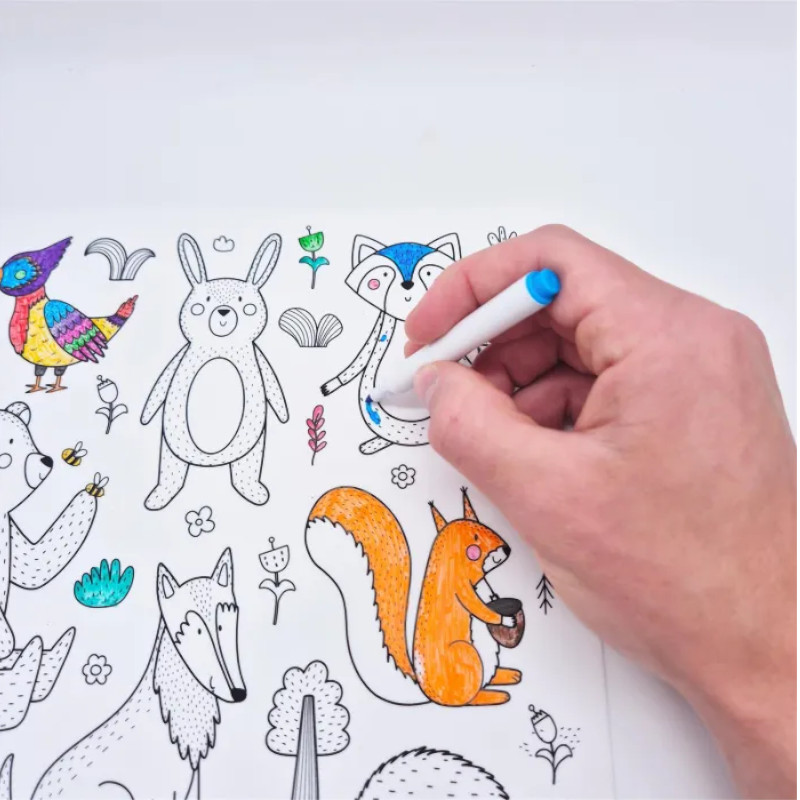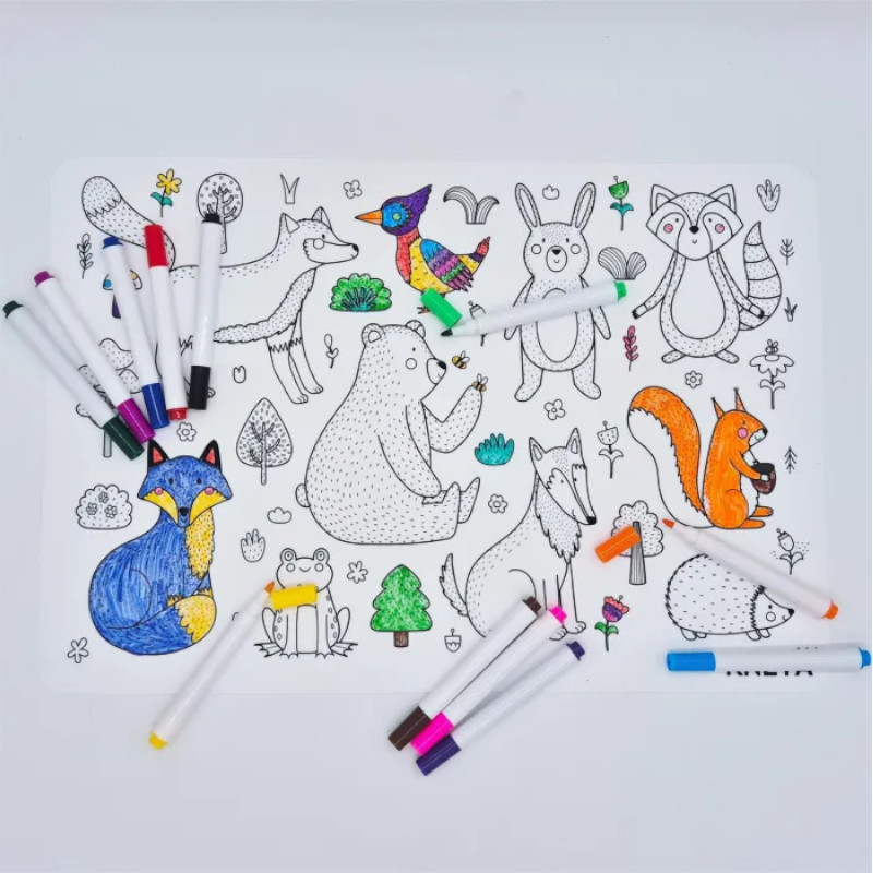 Silikoonist värvimismatt “Metsaloomad” on kergesti puhastatav ja lõputult korduvkasutatav. Komplekti kuulub 12 viltpliiatsit. Mati mõlemad küljed on värvitavad (trükitud pilt on vaid ühel küljel). Keskkonnasõbralik valik! Mugav kaasa võtta nii reisile, kohvikusse kui autosõitudele.