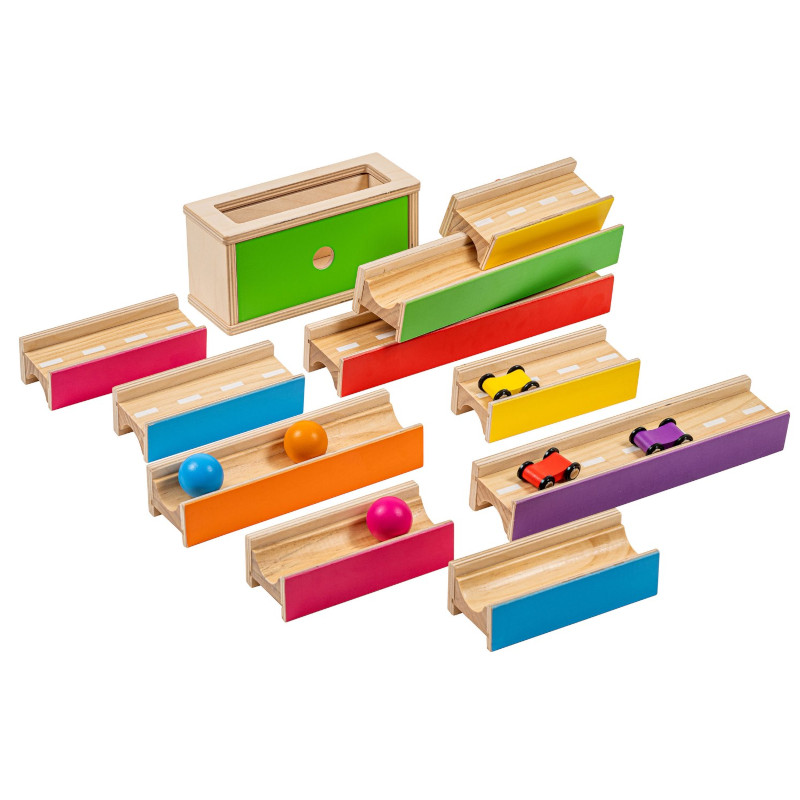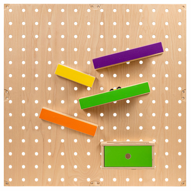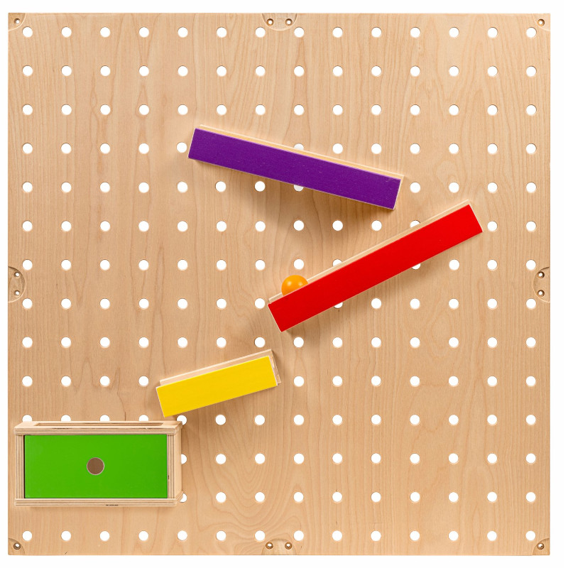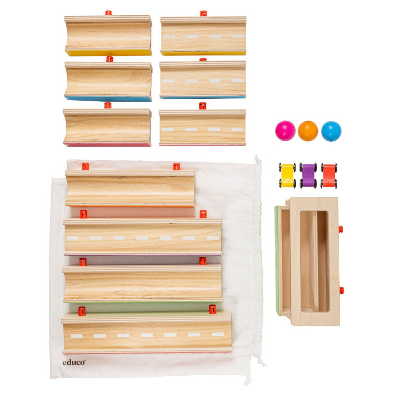 Ehita seinapaneelile liikumisrada! Kuulirada seinapaneelile sobib nii kuulidele kui väiksemate autodele. Komplekt sisaldab kahepoolseid rajaosi: ühel poolel saavad sõita kuulid, teisel väikesed autod. Lapsed saavad katsetada, kuidas raskusjõud ja kiirus koos toimivad. Raja kallet muutes saab näha, kuidas kuulid ja autod sujuvalt ülalt alla veerevad.