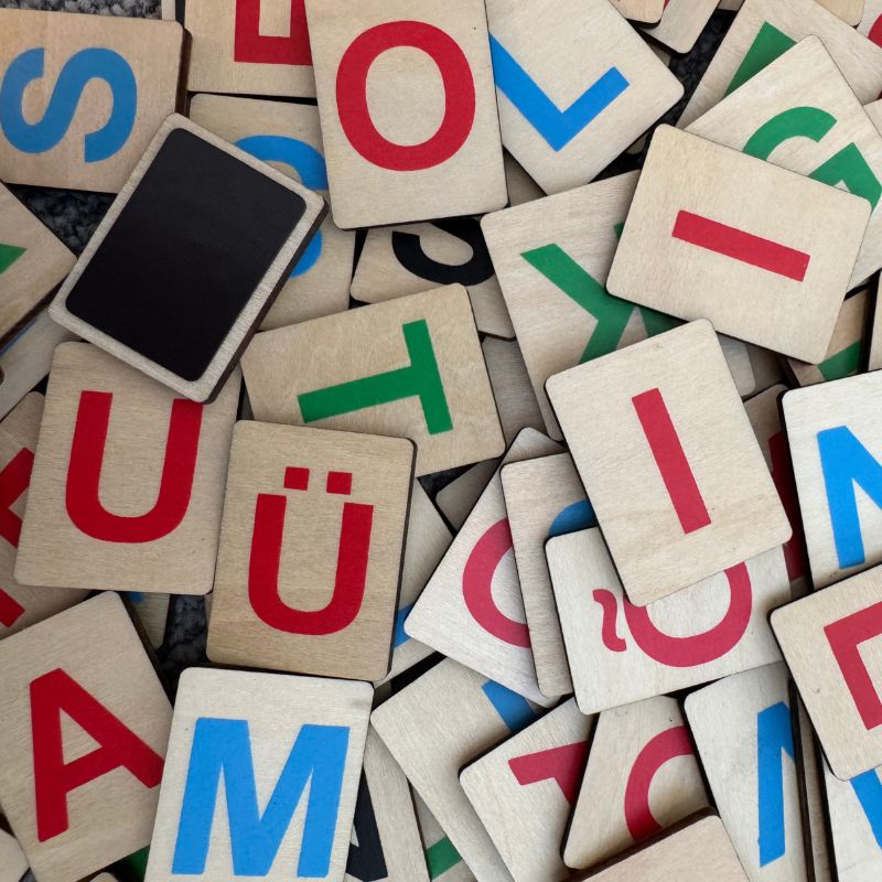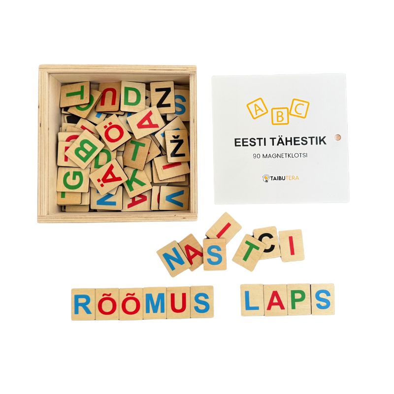 Magnetilised tähed “Eesti tähestik” (90 osa) komplektis on 90 magnetilist puidust täheklotsi, millest 86 on trükitud tähtedega ning 4 on tühjad. Neile saab peale kleepides luua ajutisi lisatähti, kirjavahemärke või muud parasjagu vajalikku.