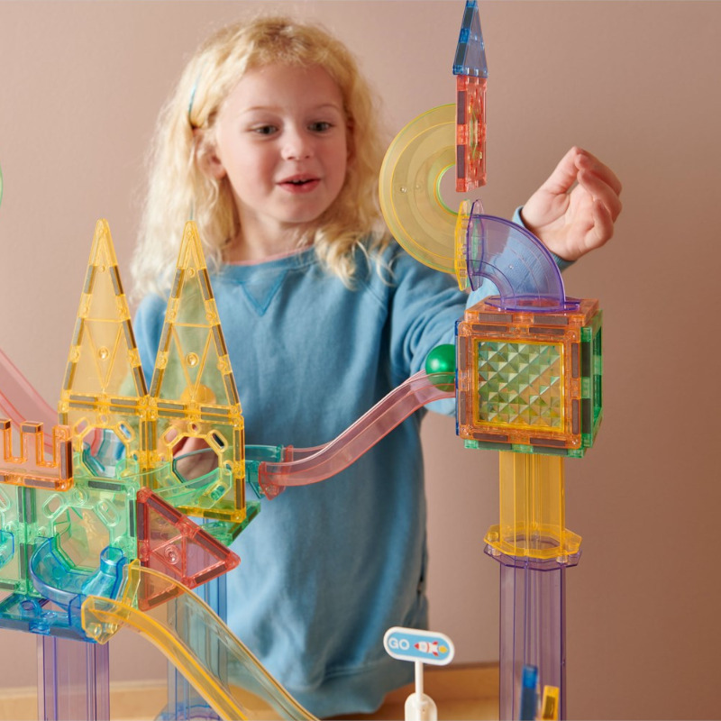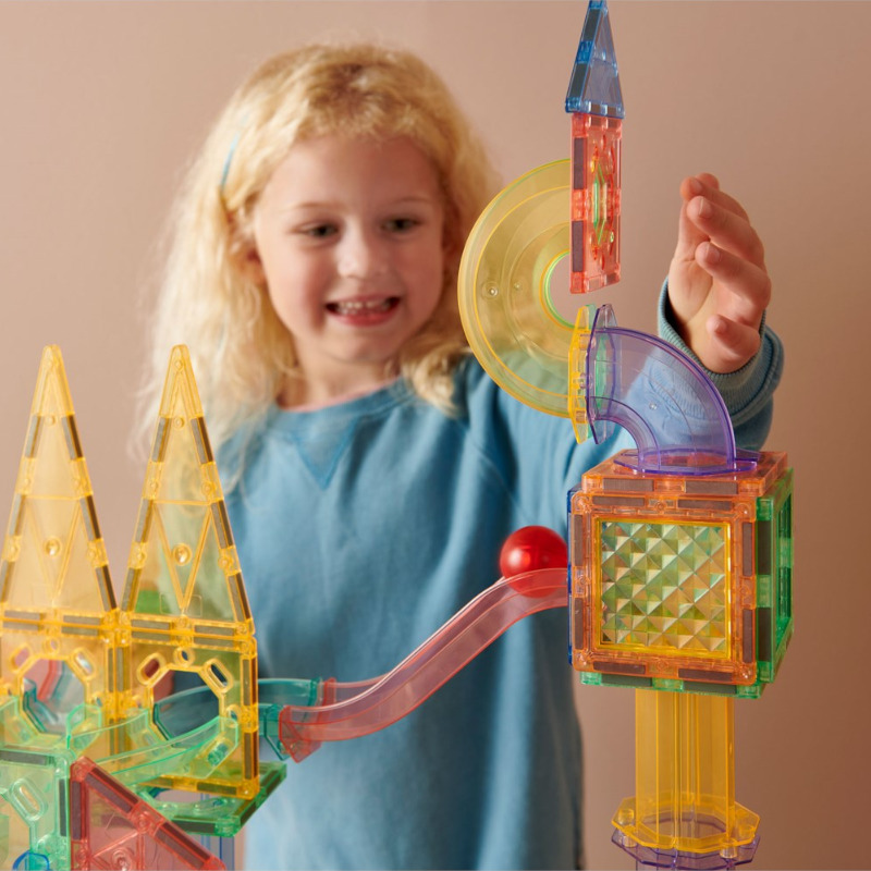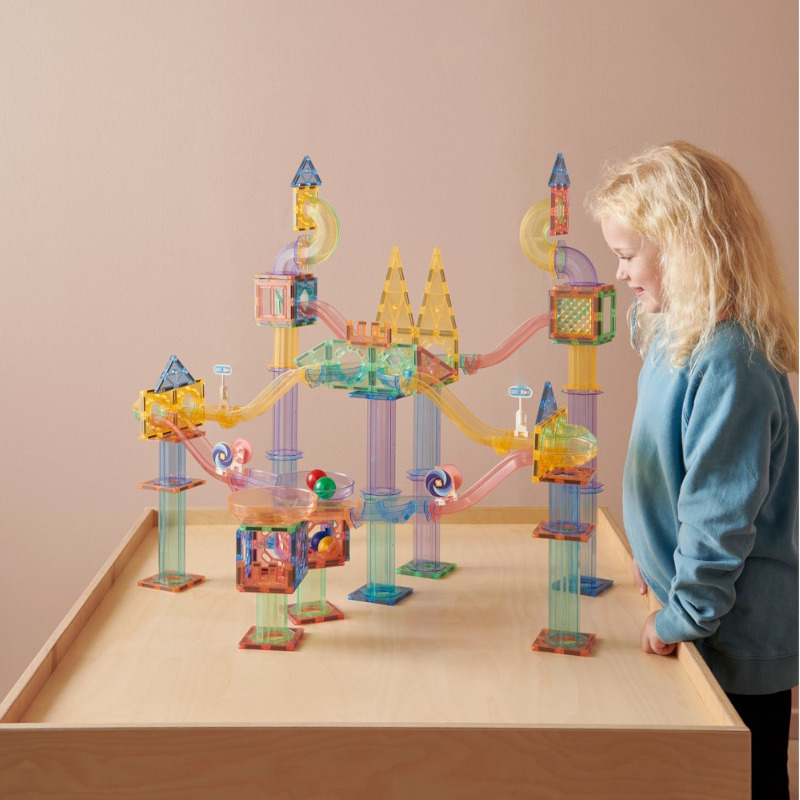 Komplekt sisaldab nelja siledat ja kvaliteetset plastkuuli (kollane, sinine, punane ja roheline), mis võimaldavad lastel muuta oma palliraja seiklused veelgi põnevamaks ja kiiremaks. Magnetklotsidega palliraja pallid on vastupidavad ja suurepärase veeremisvõimega ning julgustavad lapsi katsetama liikumise, gravitatsiooni ja erinevate radadega, arendades samal ajal nende kognitiivseid ja motoorseid oskusi.