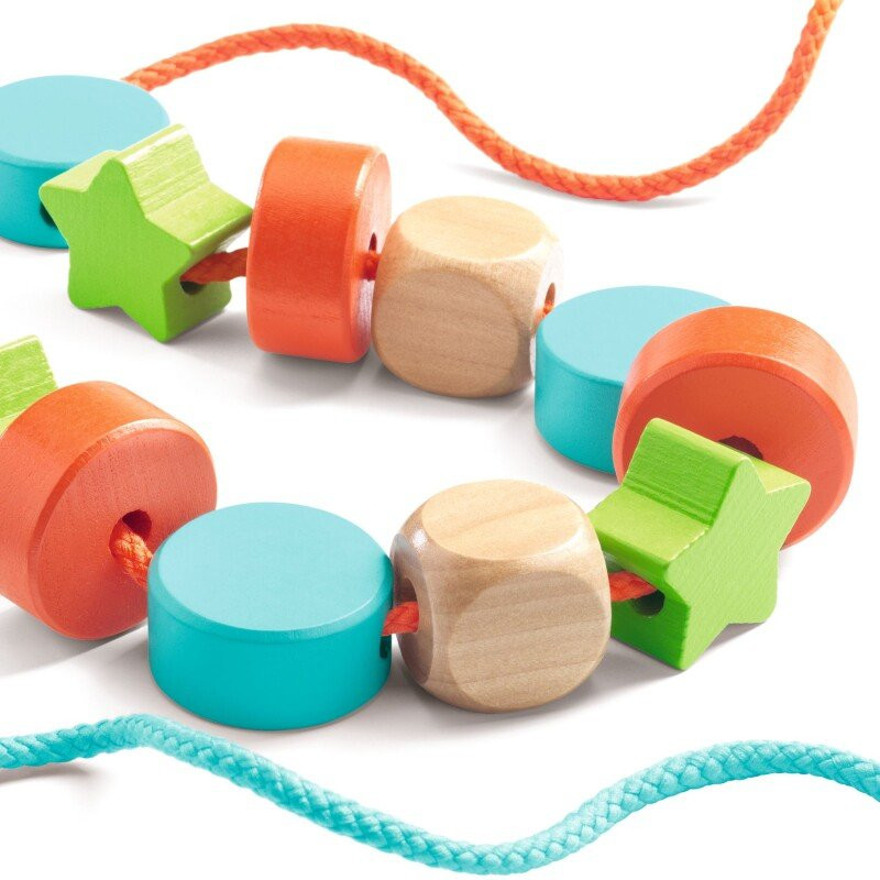 Djeco puidust nöörimishelmed “Filacolor” on vahva ja arendav puidust mäng, millega saab korraga mängida 2 last. Värviliste ja erikujuliste helmeste nöörimine on lõbus ning arendab lapse motoorseid oskusi, käe-silma koordinatsiooni ning kognitiivset ja visuaalset taju. Lisaks peetakse just nöörimismänge maailma parimaiks keskendumisvõime ja kannatlikkuse arendajaiks!