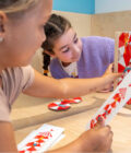 Aseta akrobaadid õiges järjestuses hoidikusse! Vaata tähelepanelikult ülesandekaarti ning pane akrobaatide jalad õigesse asendisse. Kas need on suunatud vasakule või paremale, üles või alla? Õppige suundade nimetamiseks kasutama ka ilmakaarte/tuule suuna nimetusi!