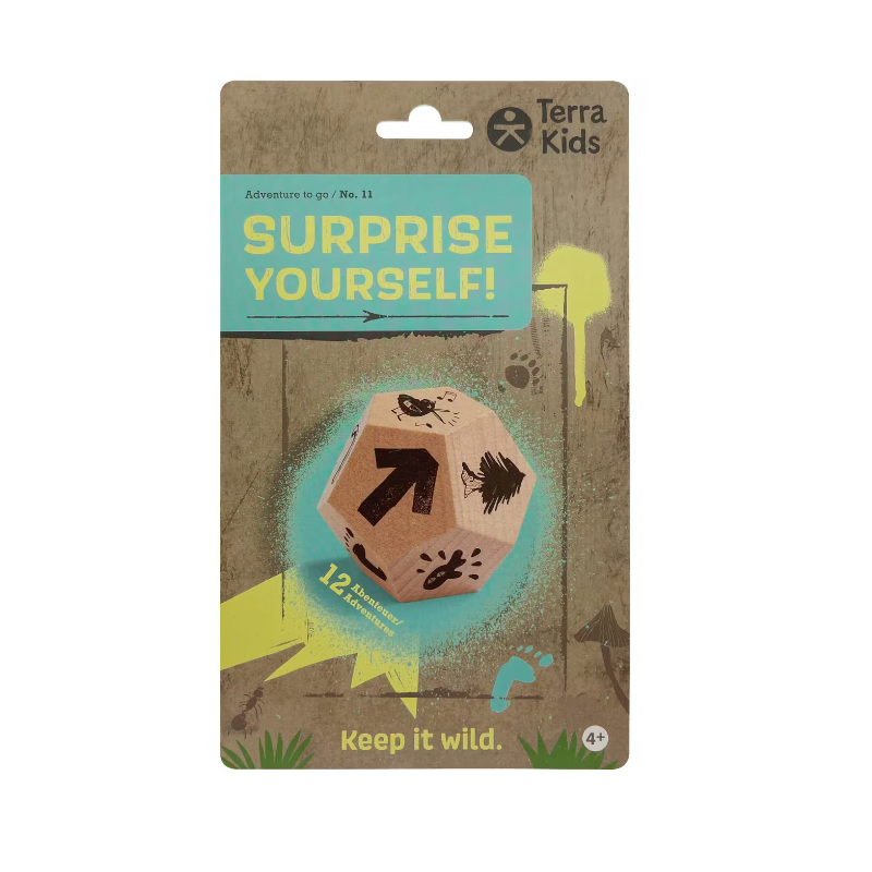 Tahaksid minna õue, aga tavaline jalutuskäik tundub igav? Õueseikluste tegevustäring “Üllata end” toob õueseiklustesse värsket vaheldust! Reeglid on lihtsad: viska täringut ja asu tegutsema. Täring suunab sind tegema lõbusaid ülesandeid, nagu näiteks “kallista puud”, “vilista nagu lind” või “pea metsas piknikku”. See on suurepärane viis motiveerida lapsi looduses liikuma ja märkama enda ümber toimuvat läbi mängu. Täringu 12 küljele saab kleepida 12 erinevat tegevust tähistavat kleebist (komplektis).