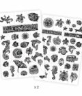 Tätoveeringute komplekt “Polüneesia” sisaldab 2 lehte (14 X 21cm) Polüneesia piirkonna kultuurist ja loodusest inspireeritud omapärase disainiga musta värvi tätoveeringuid.