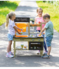 Keeda ja küpseta värskes õhus! See kvaliteetne mudaköök on loodud vastu pidama nii ilmastikule kui ka intensiivsele kasutusele lasteasutustes. Hõlpsasti kasutatav veepaak koos eemaldatava kraanikausiga on laste vaieldamatud lemmikud mudaköögi juures!