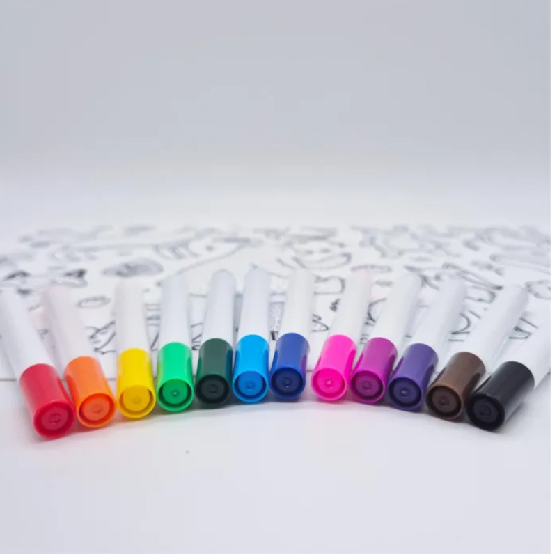 Komplektis on 12 spetsiaalset viltpliiatsit Knetä värvimismatile “Metsaloomad”. Värvid on matilt maha pestavad.