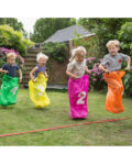 Võistlusmängude komplekt sisaldab kolme erinevat mängu ning sobib kasutamiseks nii kahekesi kui ka suurema seltskonnaga. Ideaalne komplekt sünnipäevapeole, suvelaagrisse, klassiõhtule või lasteaia perepäevale. Mängida saab kotijooksu, muna kandmist lusikal ning täpsusviset topside pihta. Sobivad kasutamiseks nii toas kui õues.